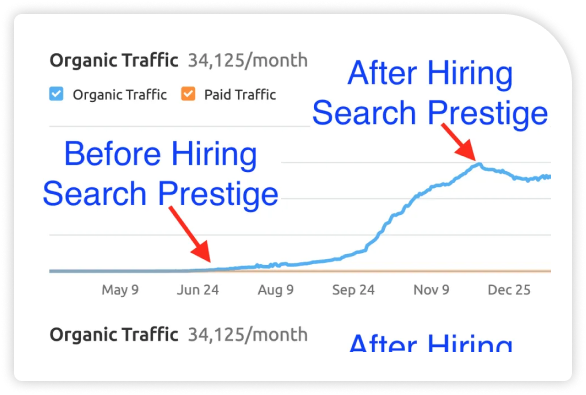 Gone are the days of simply writing blog content, setting up a landing page, and generating a 10x ROI. You need a strategy built around your business goals and a team with years to experience to execute. Welcome to Search Prestige.